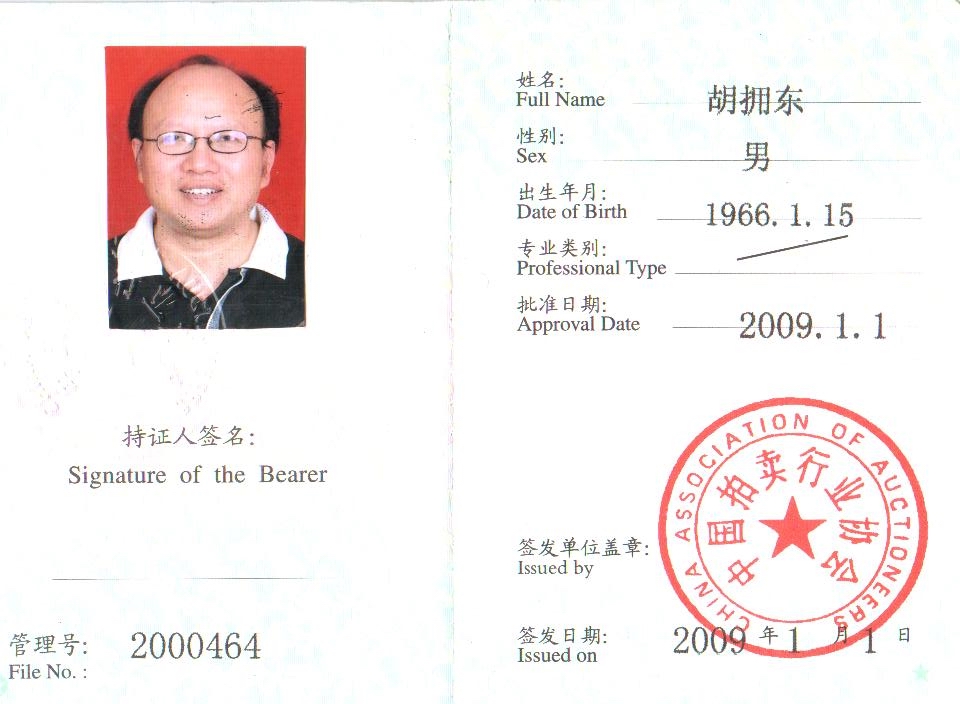 國家注冊拍賣師胡擁東執(zhí)業(yè)資