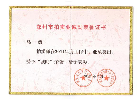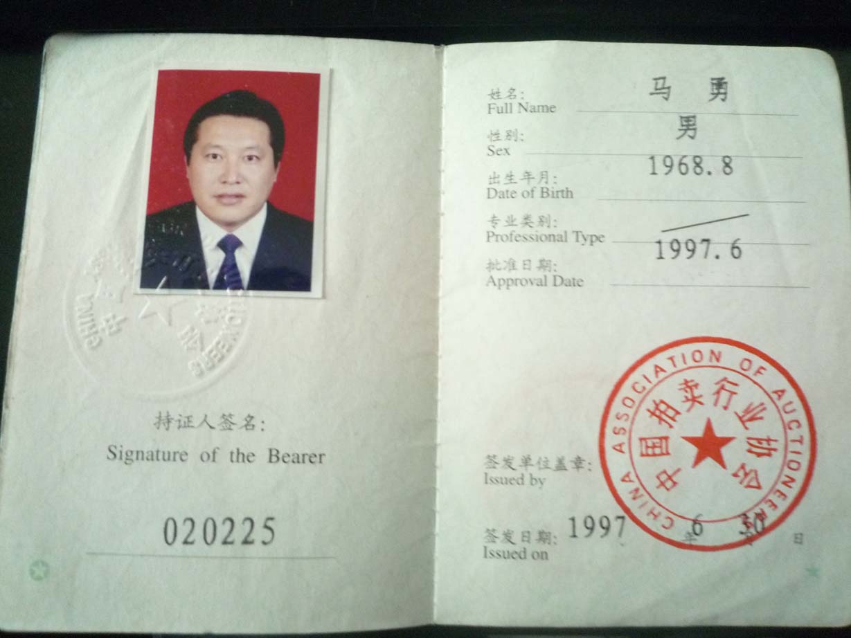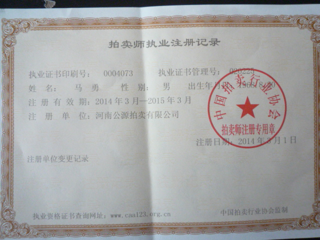 國家注冊拍賣師馬勇執(zhí)業(yè)資格